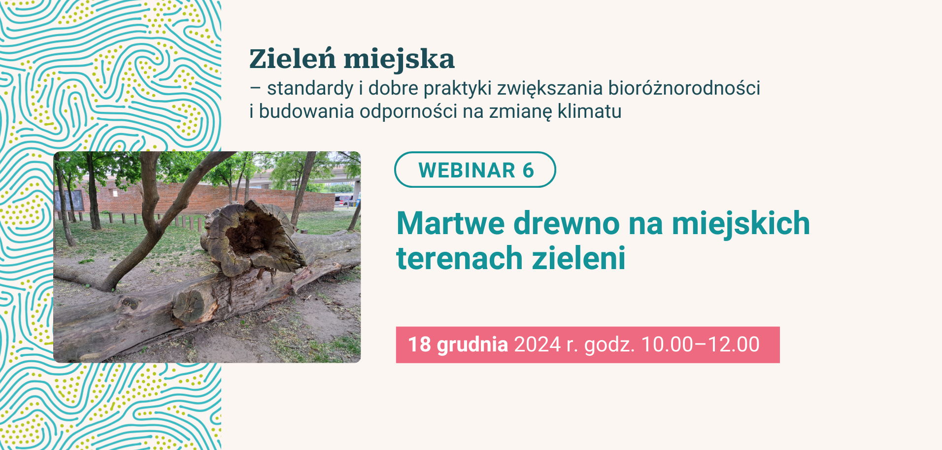 Udział w webinariach realizowanych w ramach cyklu: "Zieleń miejska – standardy i dobre praktyki zwiększania bioróżnorodności i budowania odporności na zmianę klimatu" jest bezpłatny